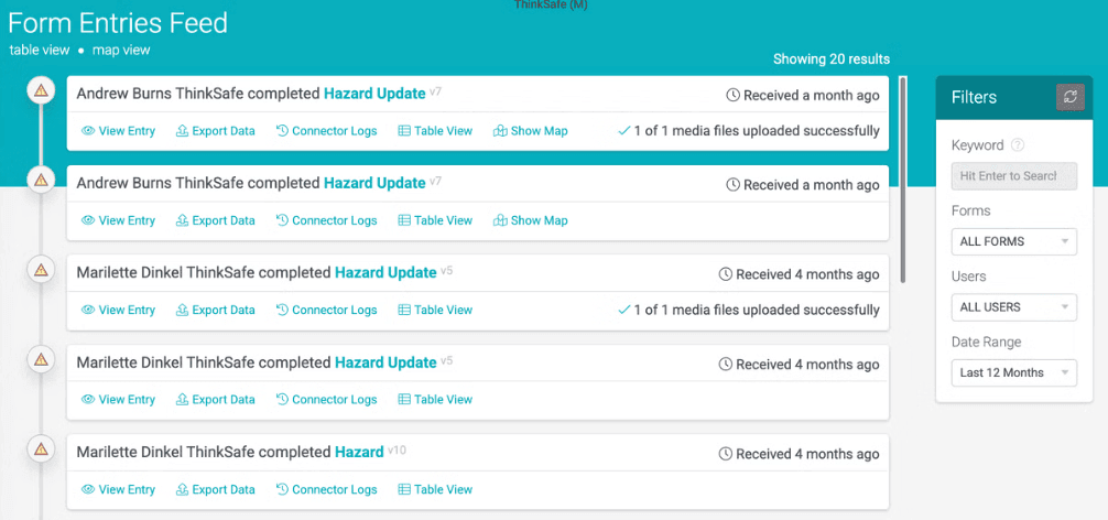 Every submission is logged with time and location, so you always know who submitted what, where.